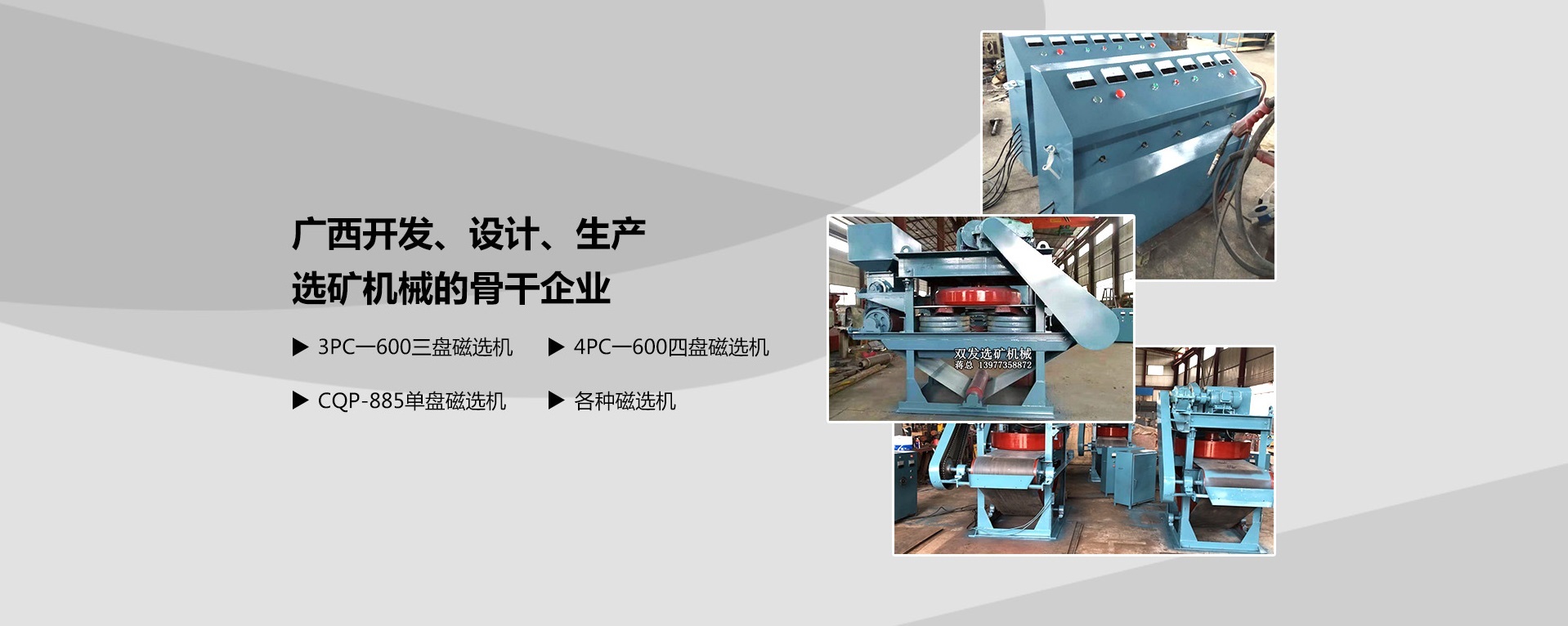桂林市灌阳双发选矿机械有限公司座落在风光秀丽的灌阳西山坪选矿机械制造工业园区,占地十余亩,交通便利,是广西开发、设计、生产选矿机械的企业。自从桂林市灌阳有色冶金选矿机械厂建厂以来。勇于开拓创新、善于经营管理,使企业由小、变成现有大规模的生产能力、较强的市场竞争力的企业。该公司培养了一批中、高级技术人员,拥有大批技术过硬的技工和领导团队,可随时根据市场需求推出新产品,并在磁选产品方面保持同行业水平。多年来,我公司生产的产品,国内销售到广东、广西、湖南、河北、海南、云南、四川、贵州、湖北、江西、辽宁、黑龙江、吉林、新疆、陕西、浙江、江苏、内蒙古、台湾等地区;国外销售到:缅甸、越南、菲律宾、马来西亚、斯里兰卡、南非、韩国、印度尼西亚、俄罗斯、朝鲜等。与国内同类设备相比,在用户中声誉高,效果好。